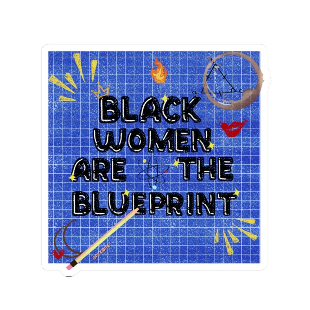 This design celebrates Black women as the blueprint . Each glossy vinyl decal carries a clean, high-contrast message that stands out on laptops, journals, water bottles (indoor use), or windows. Stick one where you want a quiet declaration of pride, a reminder of lineage and resilience, or a bright accent to your space.