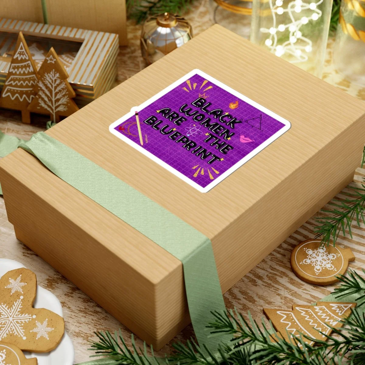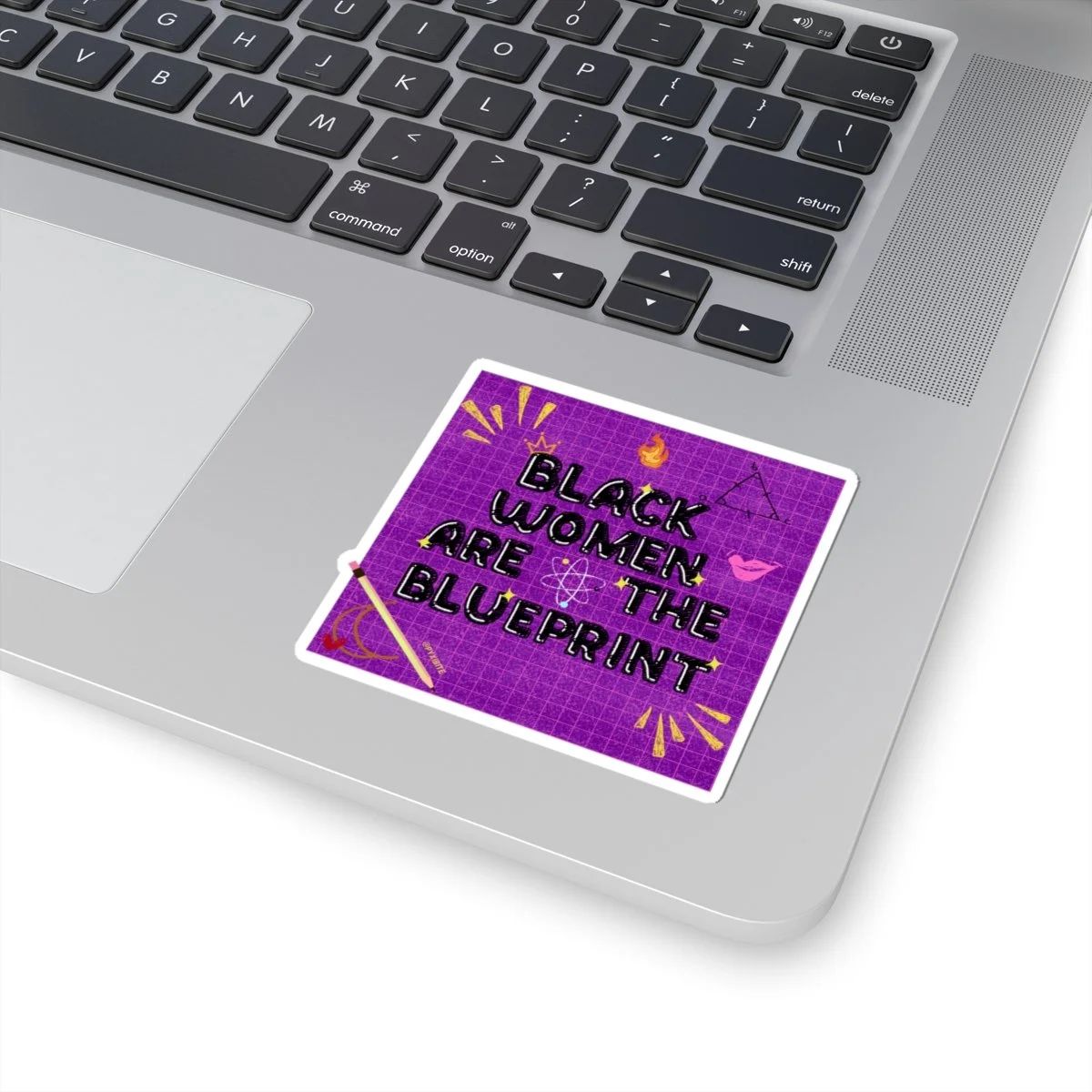 This design celebrates Black women as the blueprint . Each glossy vinyl decal carries a clean, high-contrast message that stands out on laptops, journals, water bottles, or windows. Stick one where you want a quiet declaration of pride, a reminder of lineage and resilience, or a bright accent to your space.