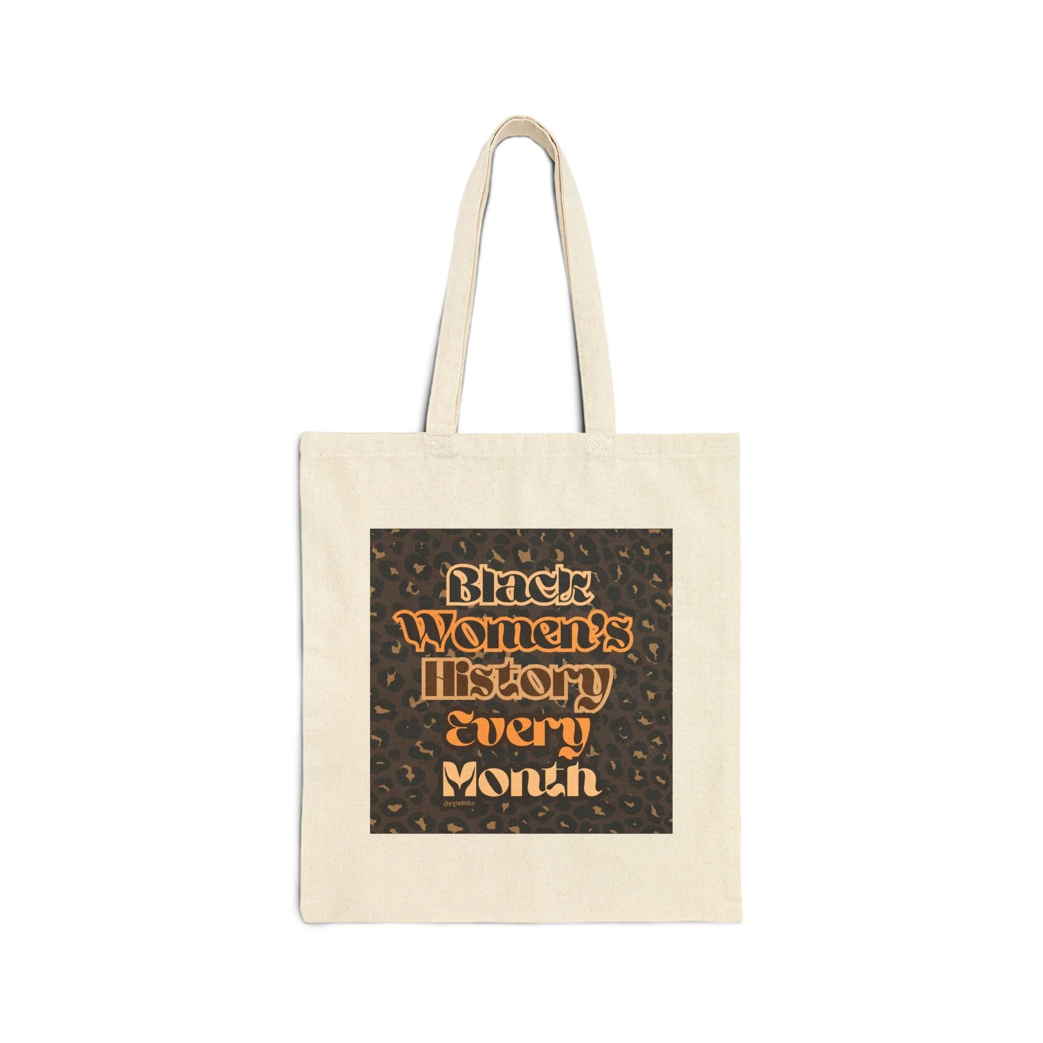 This sturdy cotton canvas tote carries more than groceries — it carries convictions. The fabric handles stand up to daily use, while the flat-corner construction keeps pockets and prints smooth and visible. The front art—warm, embossed lettering on a textured dark background—reads as a quiet, confident statement about celebrating Black women’s history year-round. It lays flat at your side on market runs, tucks under your arm at rallies, and slips over your shoulder for campus days or library study sessions. Available in natural or black, the tote ages gracefully and becomes more lived-in with every trip, holding books, banners, or everyday essentials without sagging.