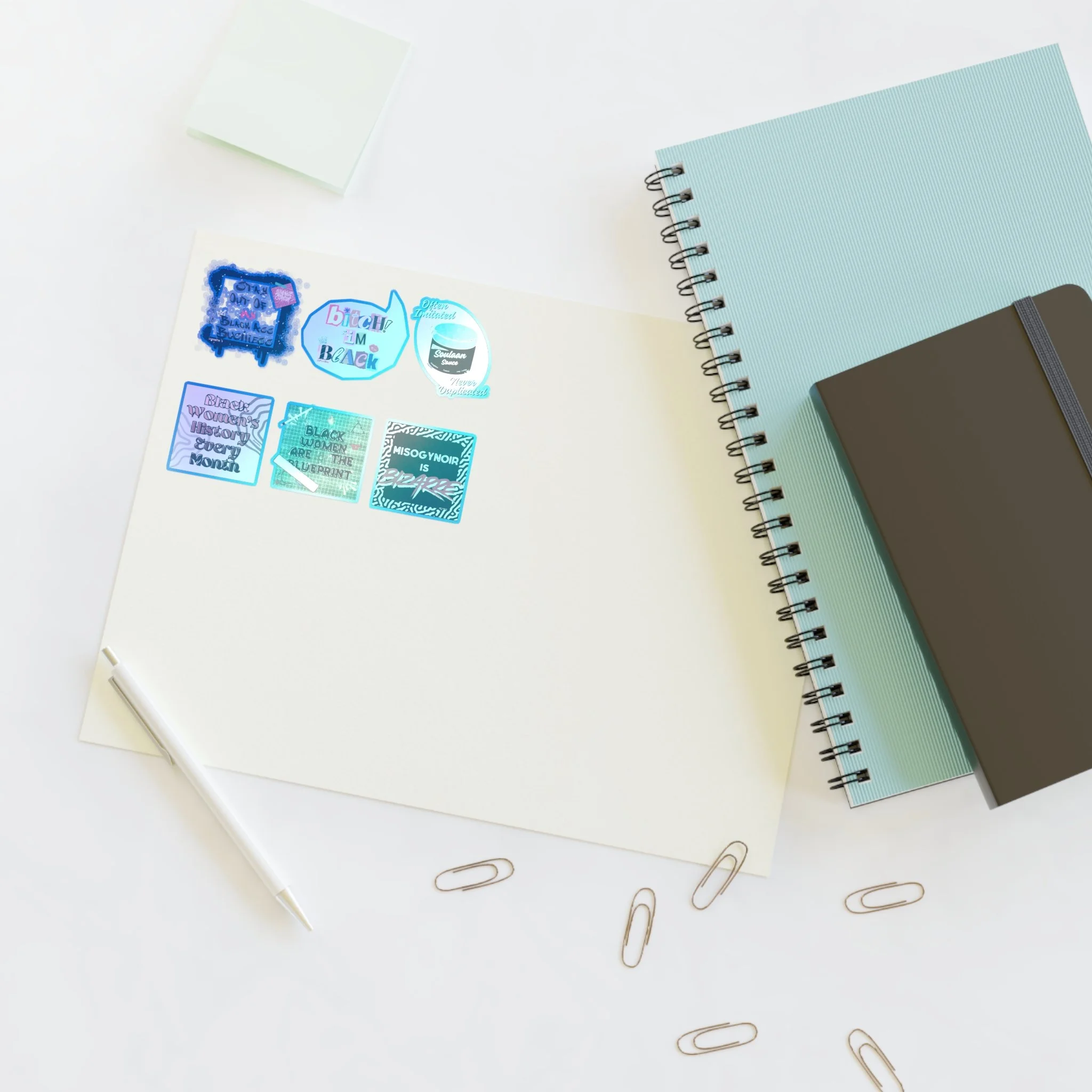 Apack of our Black Women's History Month stickers that are paerfect for planners, laptops, journals, and craft projects. Choose white, holographic, or transparent backgrounds to match your aesthetic.